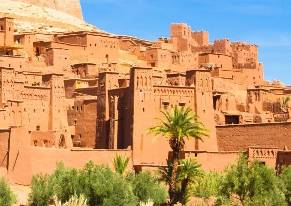 Drive to Ouarzazate, stopping at Atlas Studios to see famous movie sets. Visit the Kasbah of Ait Ben Haddou, a UNESCO World Heritage Site featured in many films. After lunch, drive through the High Atlas Mountains, enjoying the stunning landscapes. Arrive in Marrakech and settle into a Medina riad. Enjoy dinner at your restaurant or riad.